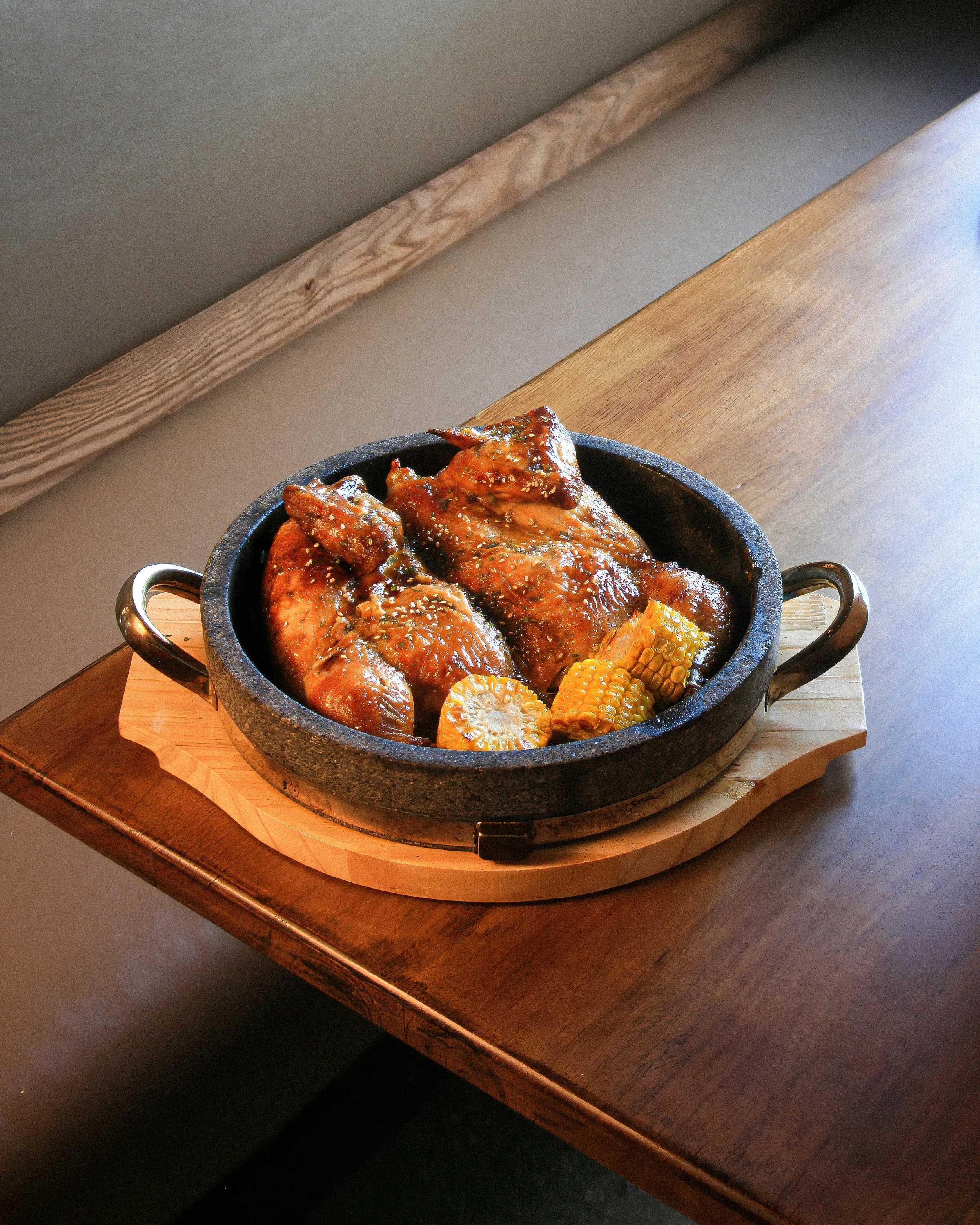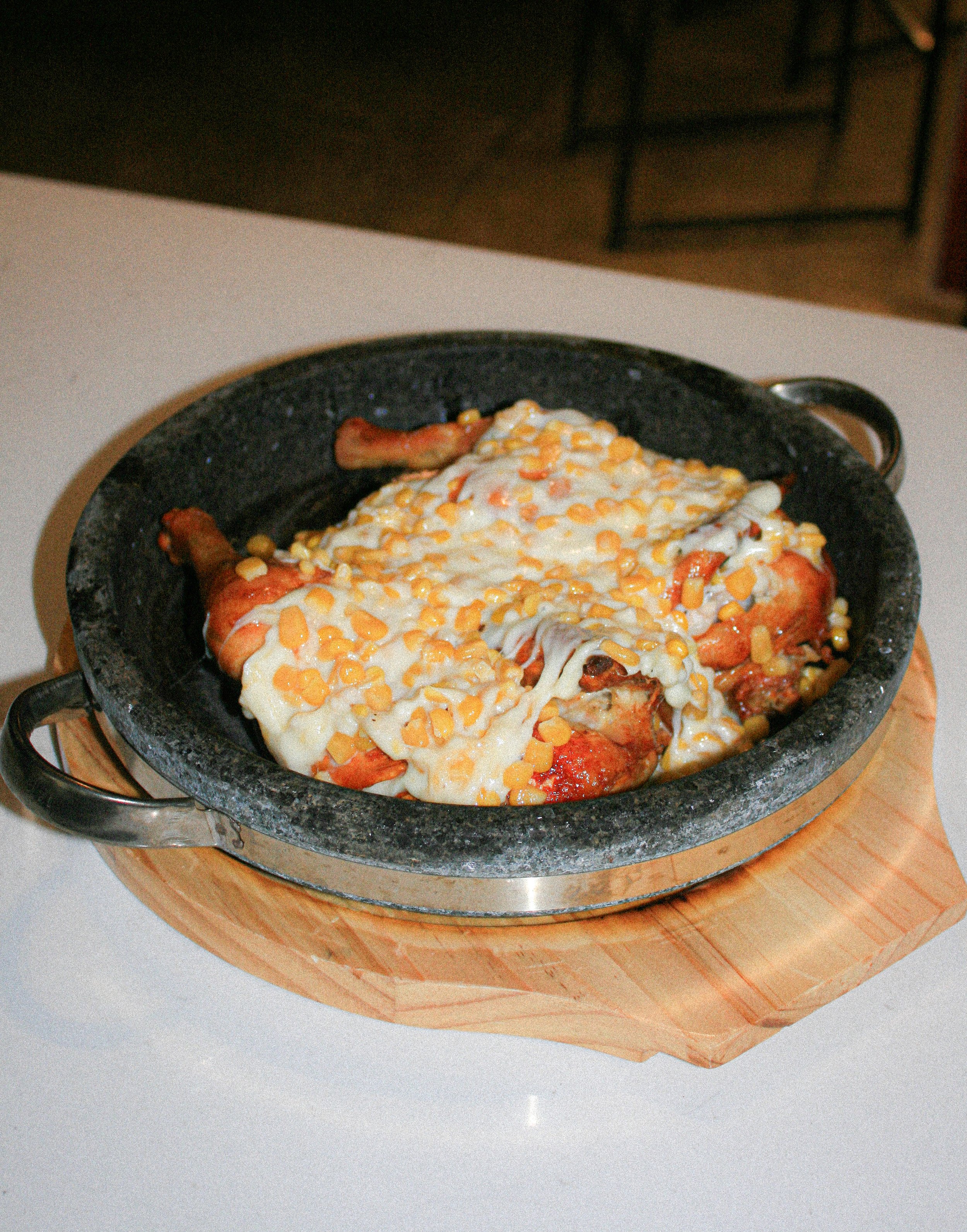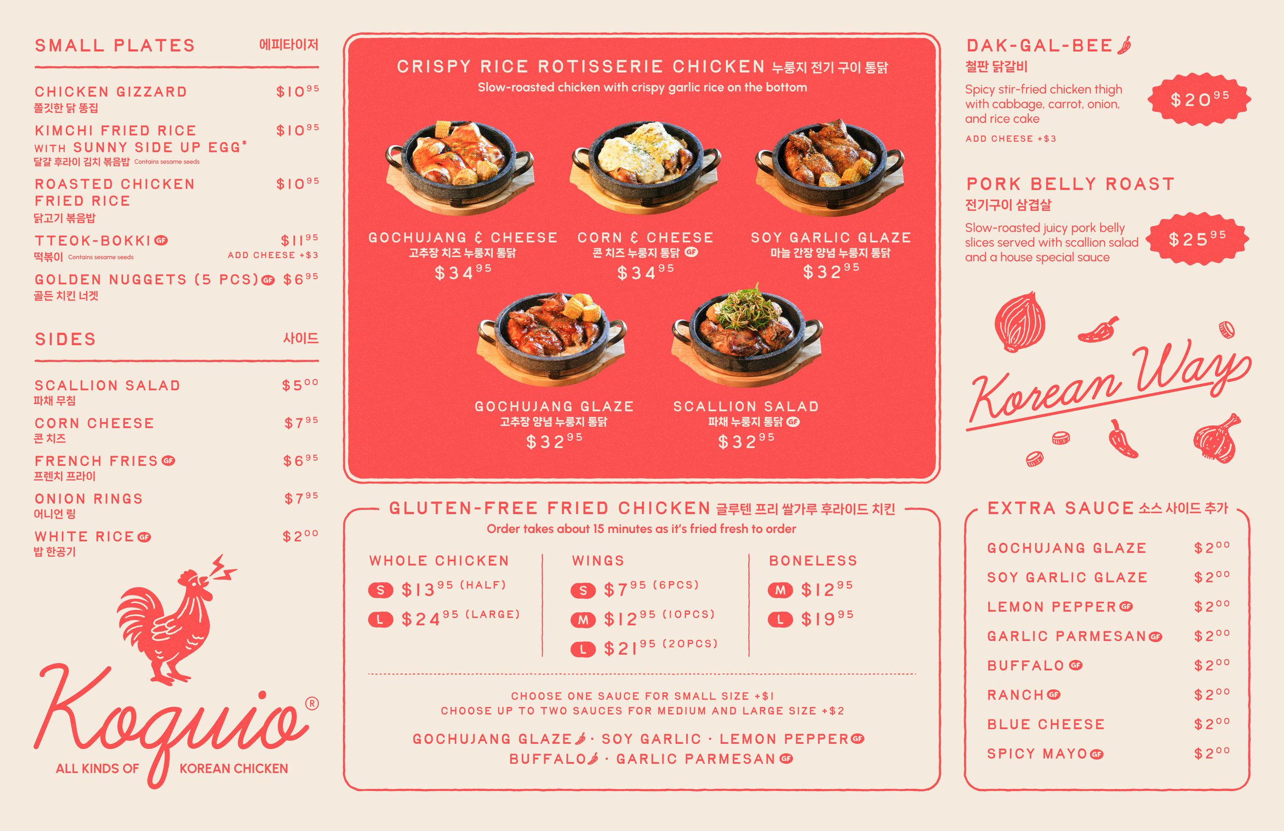 House-made Korean rotisserie chicken with a golden nurungji crust — slow-roasted, deeply savory, and unapologetically authentic.