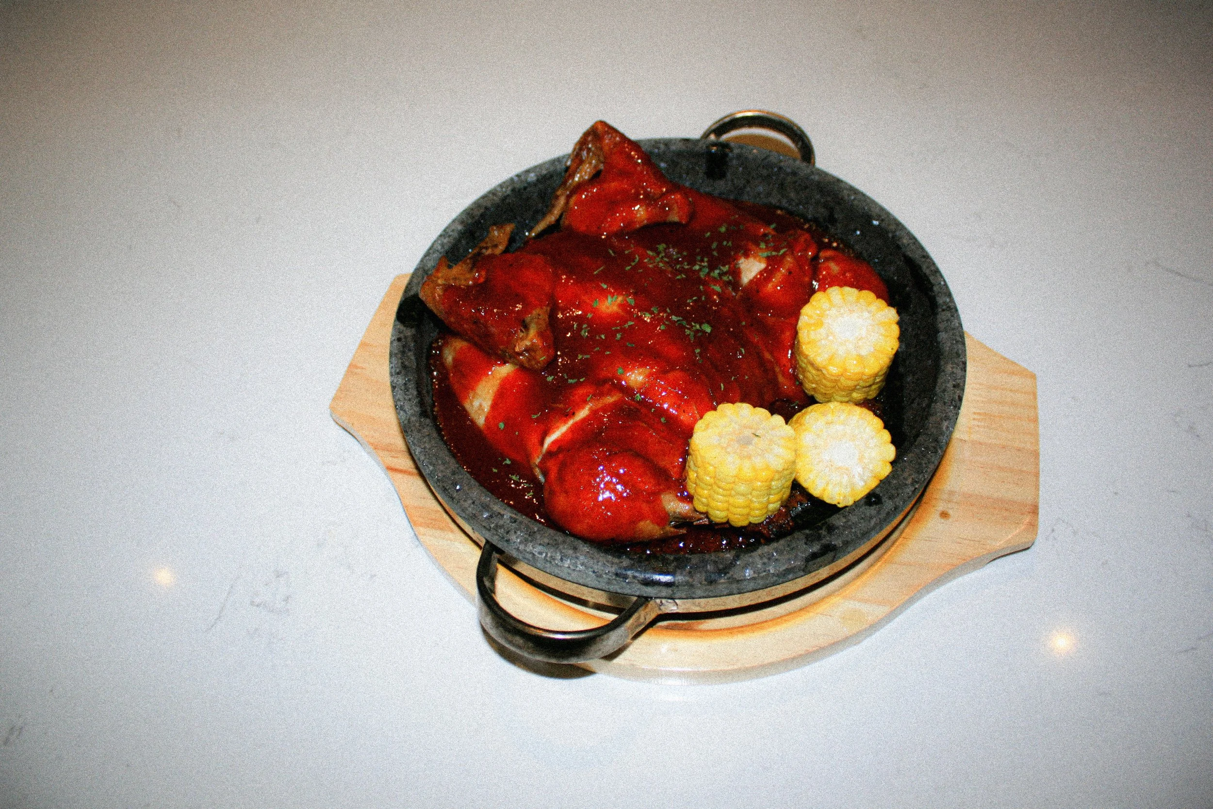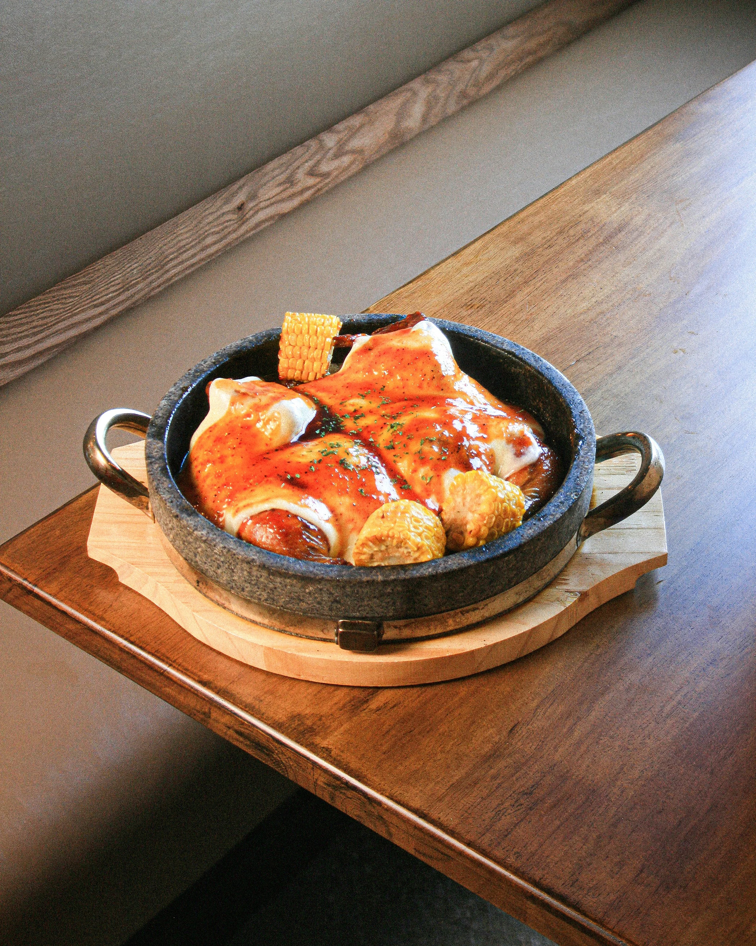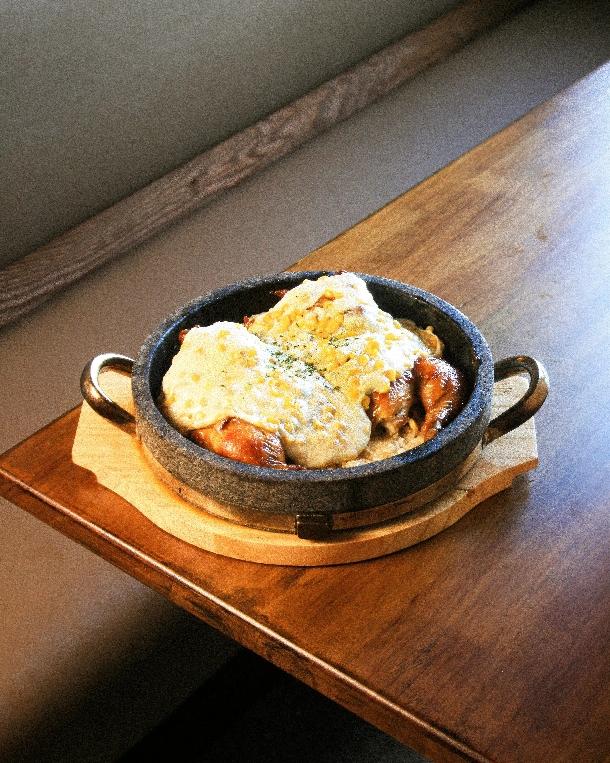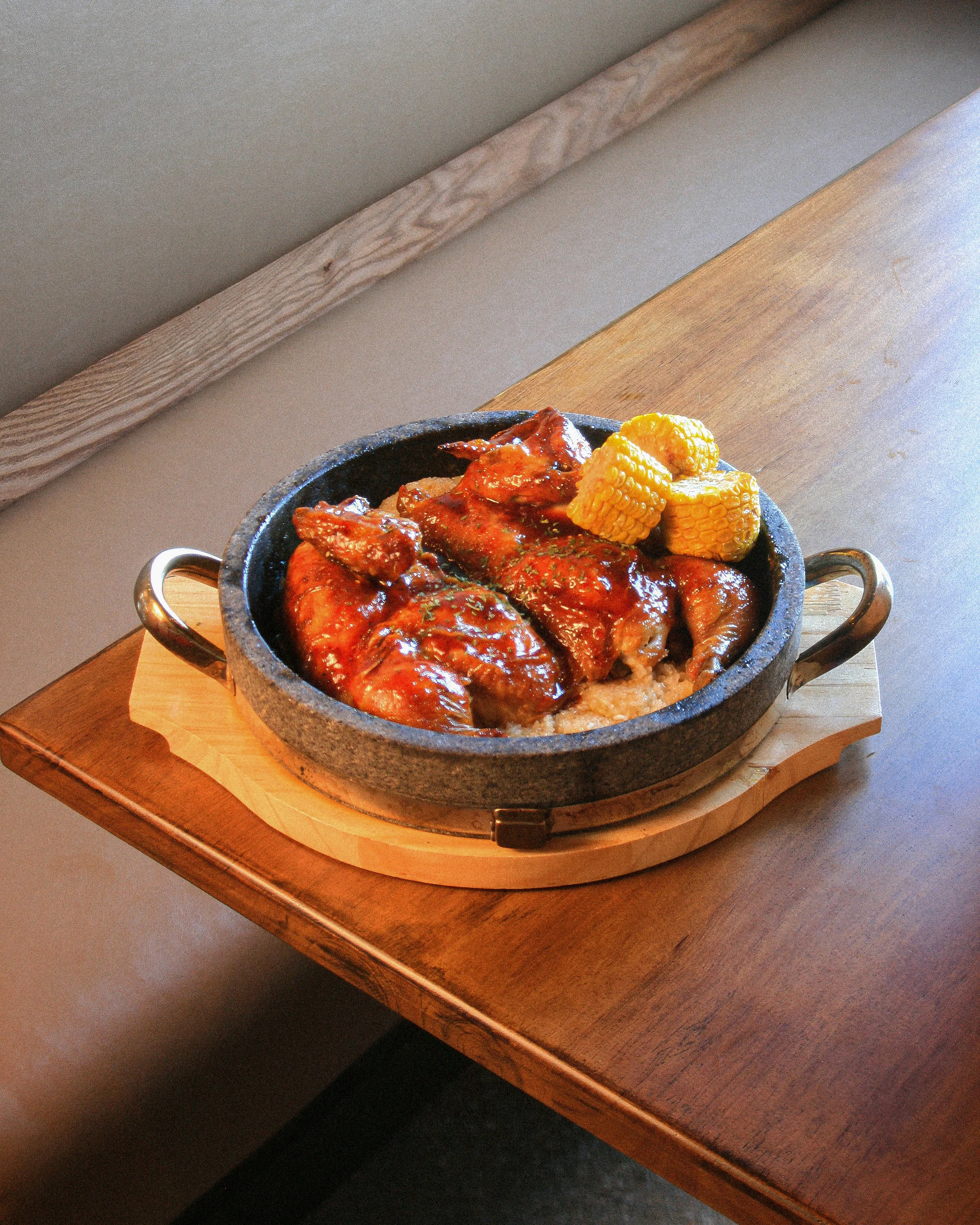 House-made Korean rotisserie chicken with a golden nurungji crust — slow-roasted, deeply savory, and unapologetically authentic.